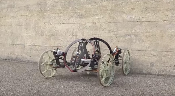 This is a new robot being created by Disney Research. Watch what happens when it meets walls.