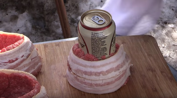 He prepares his burgers using a beer can. The result is amazing.