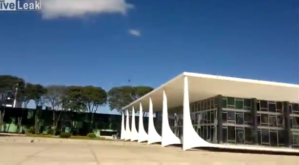 The Brazilian Air Force does a Mach 1.1 low flyby over a government building and shatters every single window on it.
