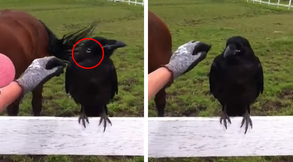 A Wild Raven Gets Human Assistance To Remove Porcupine Quills From Its Face