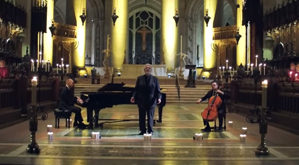 The Piano Guys, Placido Domingo and a children's choir perform 'Silent Night' in a beautiful church.