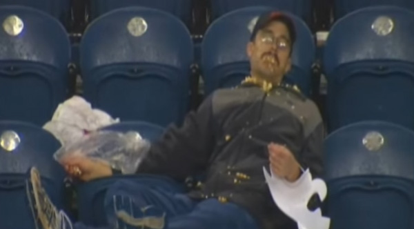 I Can't Stop Laughing At This Fan Sitting Alone In The Rain Drowning Himself In Popcorn