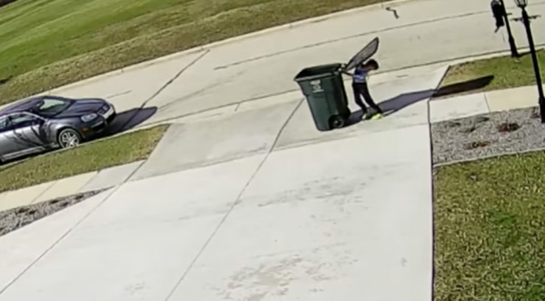 We Can't Stop Laughing At This Kid Battling A Garbage Can On A Windy Day