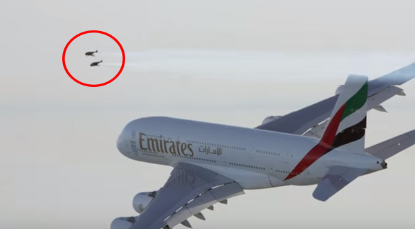 Two Guys Strapped With Jetpacks Fly Alongside The World's Largest Passenger Airliner