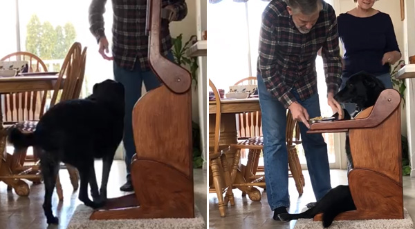 Dog's Condition Makes It Hard To Get Food Down, So She Eats In A Special High Chair