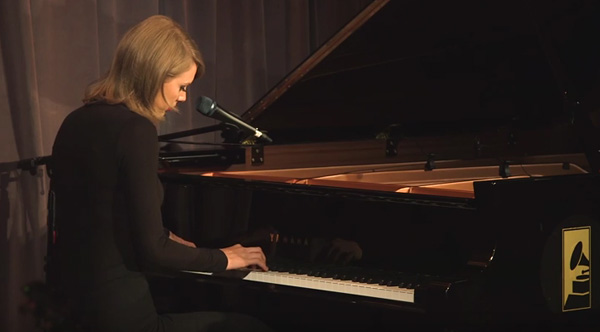 Taylor Swift performs 'Out of the Woods' on piano in a stripped-down, acoustic performance at the GRAMMY Museum.