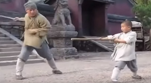 A Shaolin Kid Teaches Jackie Chan How To Use A Staff