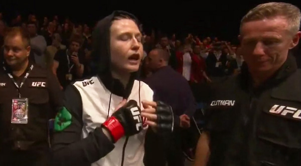 Aisling Daly walks out to The Cranberries' Zombie at UFC Fight Night 76 in Dublin. But listen to the crowd behind her.