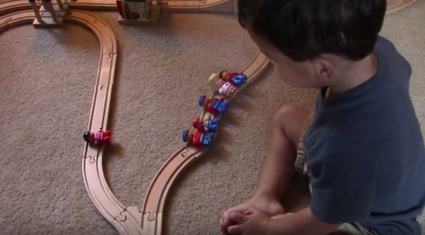 Here's how a two-year-old solves a moral dilemma on the train tracks.