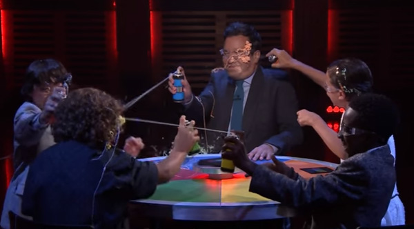 We're all pretty excited about Season 2 of Netflix's original series, Stranger Things. So here's Jimmy Fallon and the Stranger Things' kids taking turns reading unknown facts about each other, then spraying silly string on who they think wrote each fact.