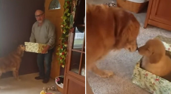 Lonely Dog Can't Contain His Joy After Unwrapping A Puppy For Christmas