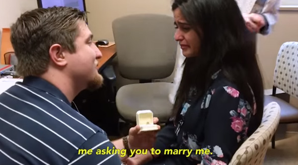 A woman receives a cochlear implant and hears clearly for the first time in her life. Then her boyfriend drops to one knee and proposes.