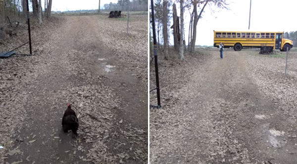 Rooster Sees The Bus Pull Up And RUNS To Greet His Best Friend