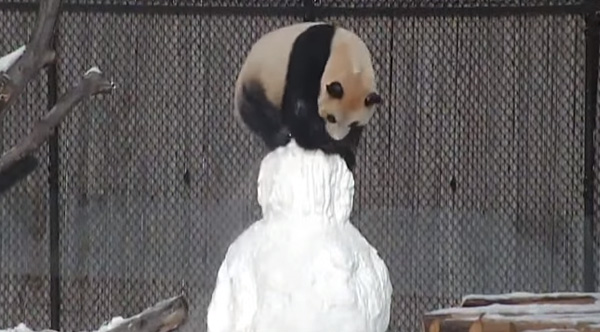 This Panda Playing With A Snowman Is One Of The Best Things I've Ever Seen