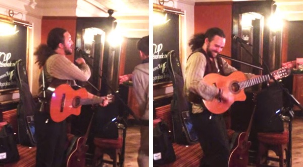 He's known as Pirate Joe and he's amazing. This is an original song called 'The Travelling Song' performed on open mic night at a local pub.