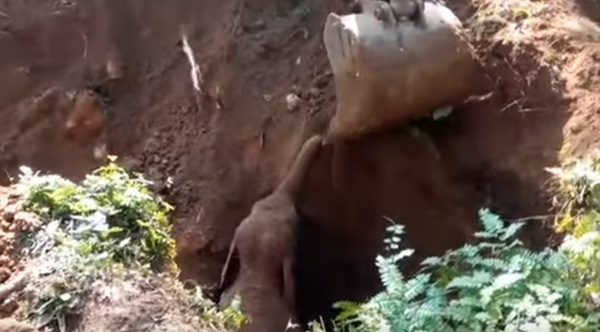 Wild Elephant Salutes The Men Who Rescued Her Baby From A Ditch