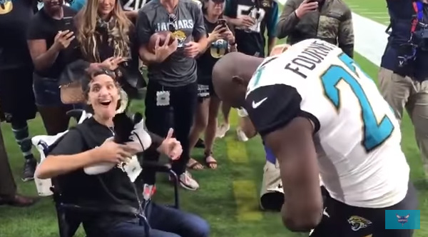 Leonard Fournette signs and gives cleats to a paralyzed fan. His reaction is priceless.
