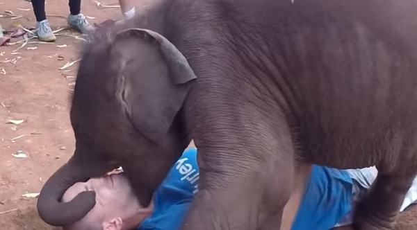 Baby Elephant Tries To 'Eat' Man's Face During Cuddle Session And We're All Jealous