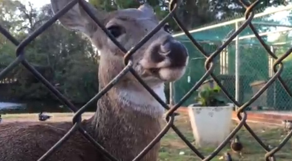 A friendly deer loves to be pet and scratched just like a dog does in this wholesome video.