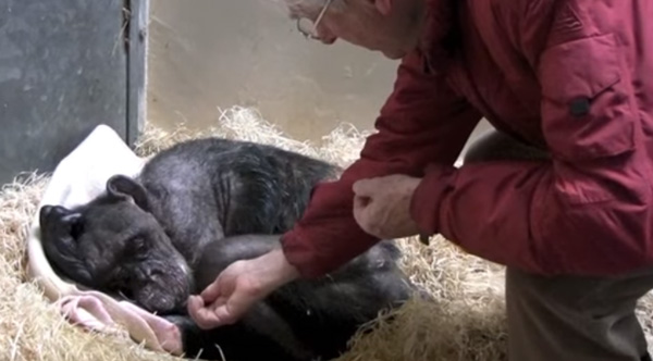 59-Year-Old Chimp Is Very Sick And Refuses Food, Then She Recognizes Her Old Friend