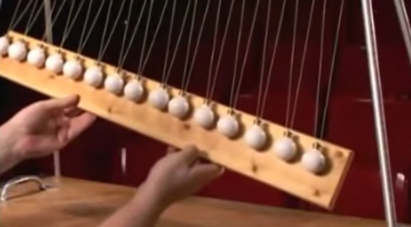 A video of pendulum waves from Harvard accompanied by 'The Secret Agent Ending' by Philip Glass.
