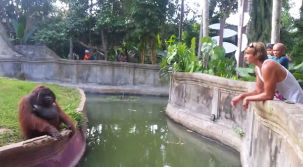 Man Tosses Treat To Orangutan, Orangutan Returns The Favor