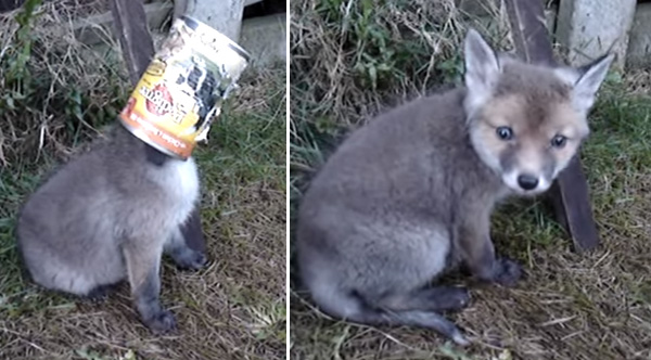 This baby fox with its head stuck in a can is so frightened at first, but it quickly realizes the man was only there to save him.