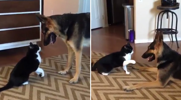 The Cat And Dog Are Fighting, But Keep Watching. Love Conquers All