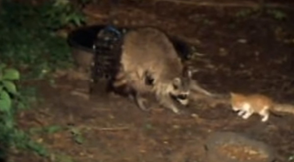 This Is What Happened When A Lost Kitten Strayed Into A Raccoon Feeding Area