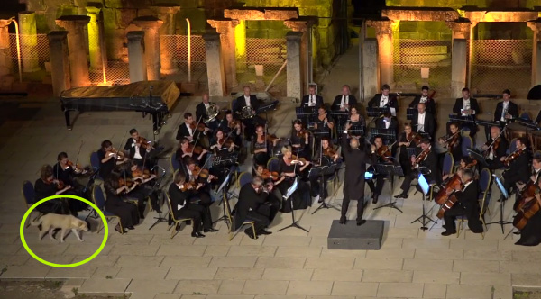 Dog Walks On Stage And Settles In During A Live Orchestra Performance