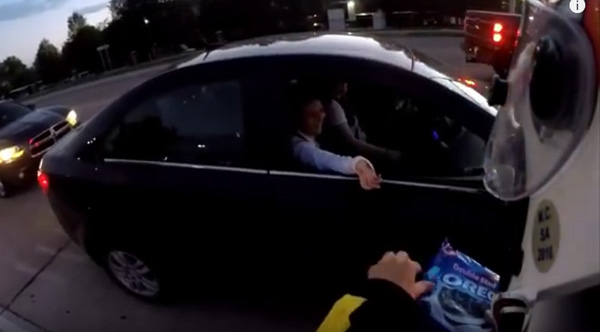 Motorcyclist Drives Around With Oreos And Offers Them To People Sitting In Traffic