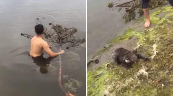 Koala Bear Is Drowning, Then A Hero Comes Along