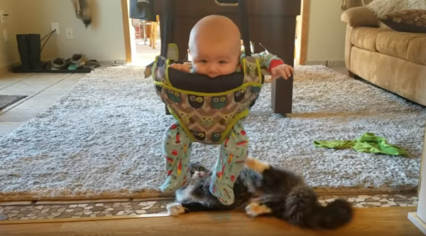 This Baby In His Swing Is The Cat's Favorite New Toy