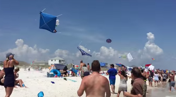 Spectators at Pensacola Beach - the hometown of the Blue Angels - were in for a treat after Blue Angel #5 does a low fly-by that sends tents and umbrellas flying.