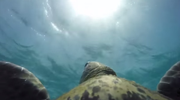 A sea turtle with a GoPro camera strapped to its back has provided a remarkable view of life along Australia's 1,800-mile Great Barrier Reef.