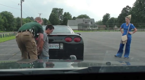 A police officer pulls over a black corvette and tells the driver that he received a complaint about his driving. The nervous driver follows the officer's orders, but still ends up with a life sentence.