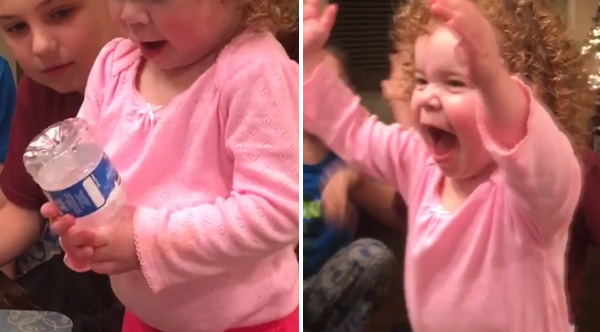 Little Girl Has The Cutest Reaction EVER To Her Water Bottle Flip