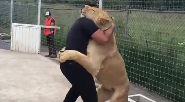 This wonderful footage shows a lion reuniting with her first adoptive father.
