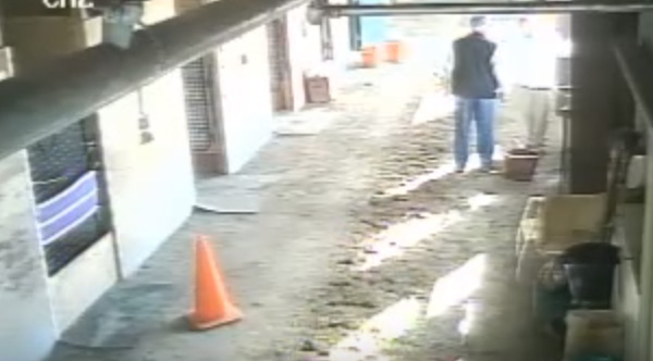 The video surveillance system at Parx Racing (near Philadelphia) recently captured this incident, which certainly caught the surprise of the stable-hand.