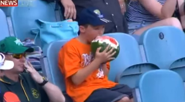 Australian Boy Caught Eating Entire Watermelon At Cricket Game Becomes Viral Sensation