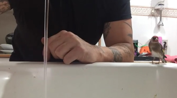 He Puts His Hands Under The Running Water. Now Watch What The Bird Does!
