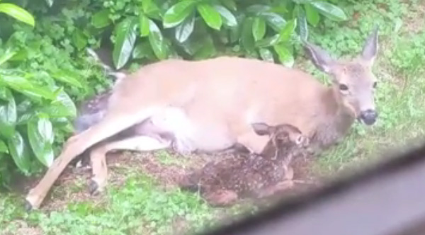 She Films A Deer Giving Birth To Twins Right Outside Of Her Backyard Window. WOW!