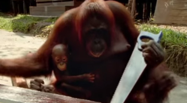 It's striking to see how similar orangutans are to humans. The tool-use is amazing, but it's the boat paddling that really blew my mind.