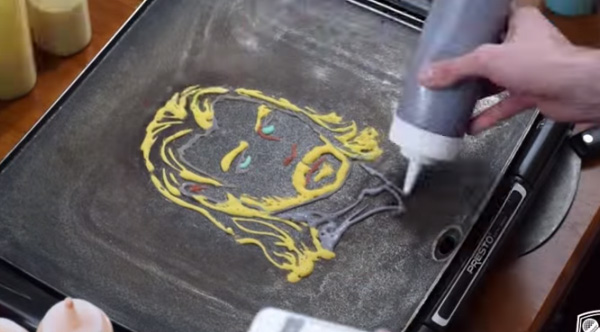 He Draws On The Griddle With Colored Batter. When He Flips Them Over... WOW!