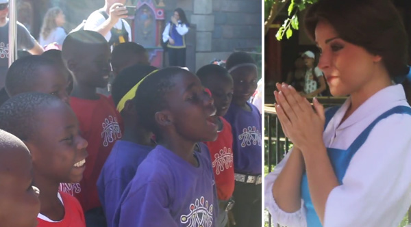 Watch The African Children's Choir's impromptu performance for Belle at Disneyland.