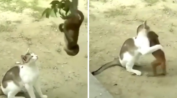 A Baby Monkey Befriends A Playful Cat In New Viral Video
