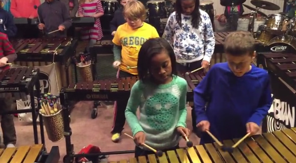 Watch music students in Louisville, Kentucky, perform a variety of Led Zeppelin songs on xylophones and drums.