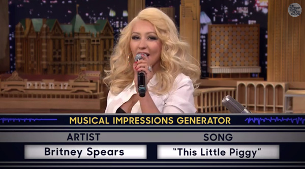 Christina was challenged to a fun game of random musical impressions, including Britney Spears and Cher.