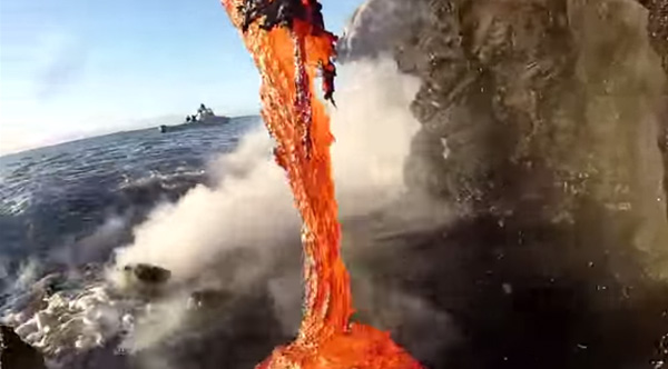 Guy Gets Dangerously Close Video Of Lava Spilling Into The Ocean