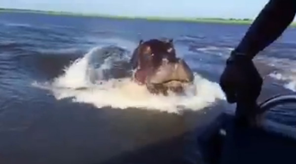 Incredible Close Encounter With A Huge Hippo Chasing A Safari Boat